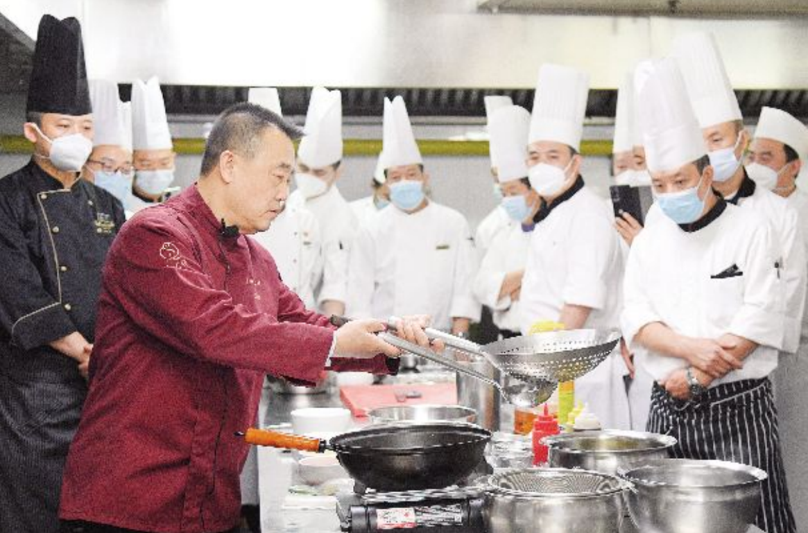 研修班共邀请13位行业专家,从提高认知、开拓眼界、厨房管理实操技能提升三个维度为参训学员带来共计80个学时的系统培训。理论培训方面包含创新思维、世界饮食文化等课程,实操技术方面包含面果制作技艺、中餐菜品赏析等课程,管理技能方面包含厨房管理、餐饮成本控制等课程。人民大会堂西餐厨师长徐龙以《中西融合历史文化与路径》为主题,带来餐饮行业最新的前沿理论,进一步开拓学员视野;央视财经频道《满汉全席》擂台赛两届擂主徐宝良从餐饮产品设计、厨房成本管控思路等方面分享了厨房管理经验;北京屈浩烹饪学校校长屈浩,国家职业技能鉴定高级考评员王春耕,北京瑜舍酒店京雅堂餐厅李冬,中国烹饪大师、“京城面点大王”王志强四位老师,围绕中餐和面点与学员进行了技艺交流。